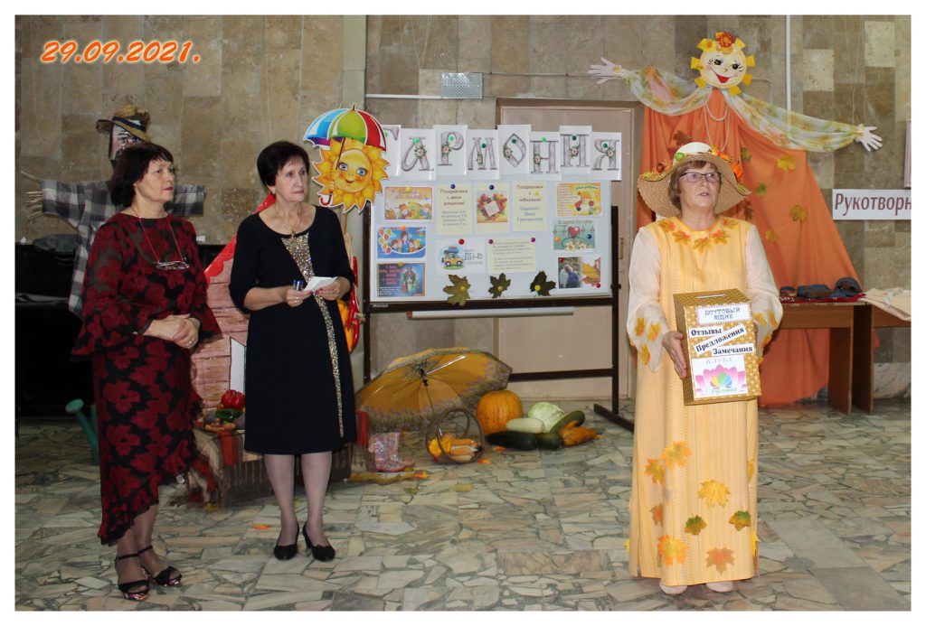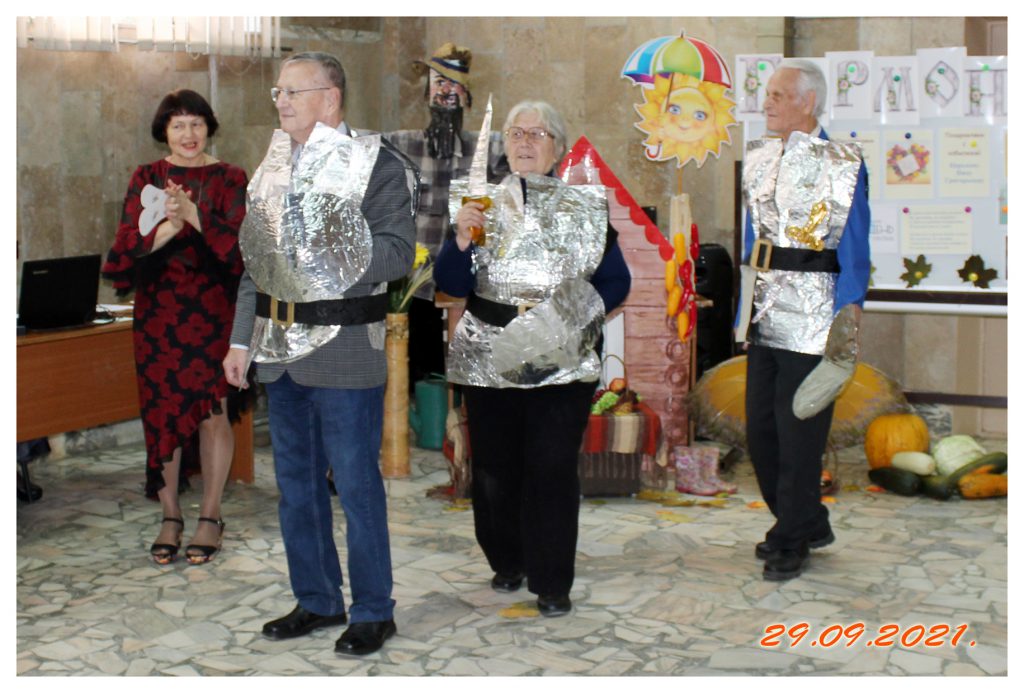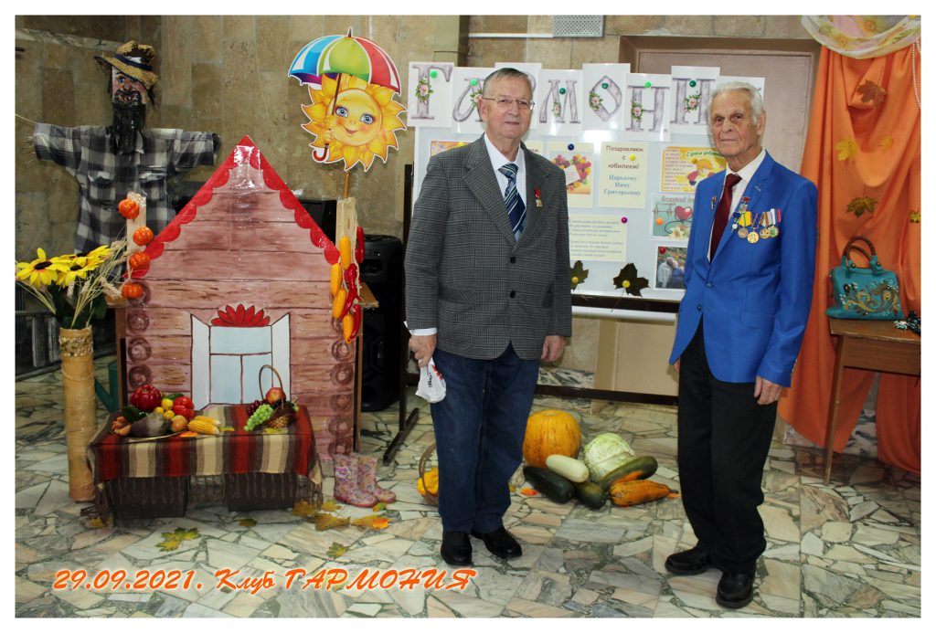 Гостей праздничного вечера встречала Ирина Анатольевна Расторгуева в роли красавицы-осени, которая вместе с ведущими Натальей Николаевной Ореховой и Галиной Викторовной Аладовой рассказала собравшимся о праздничных и памятных датах сентября. Разнообразить этот перечень праздников помогали члены танцевальной группы клуба, самодеятельные певцы и непрофессиональные артисты из числа «гармонистов».