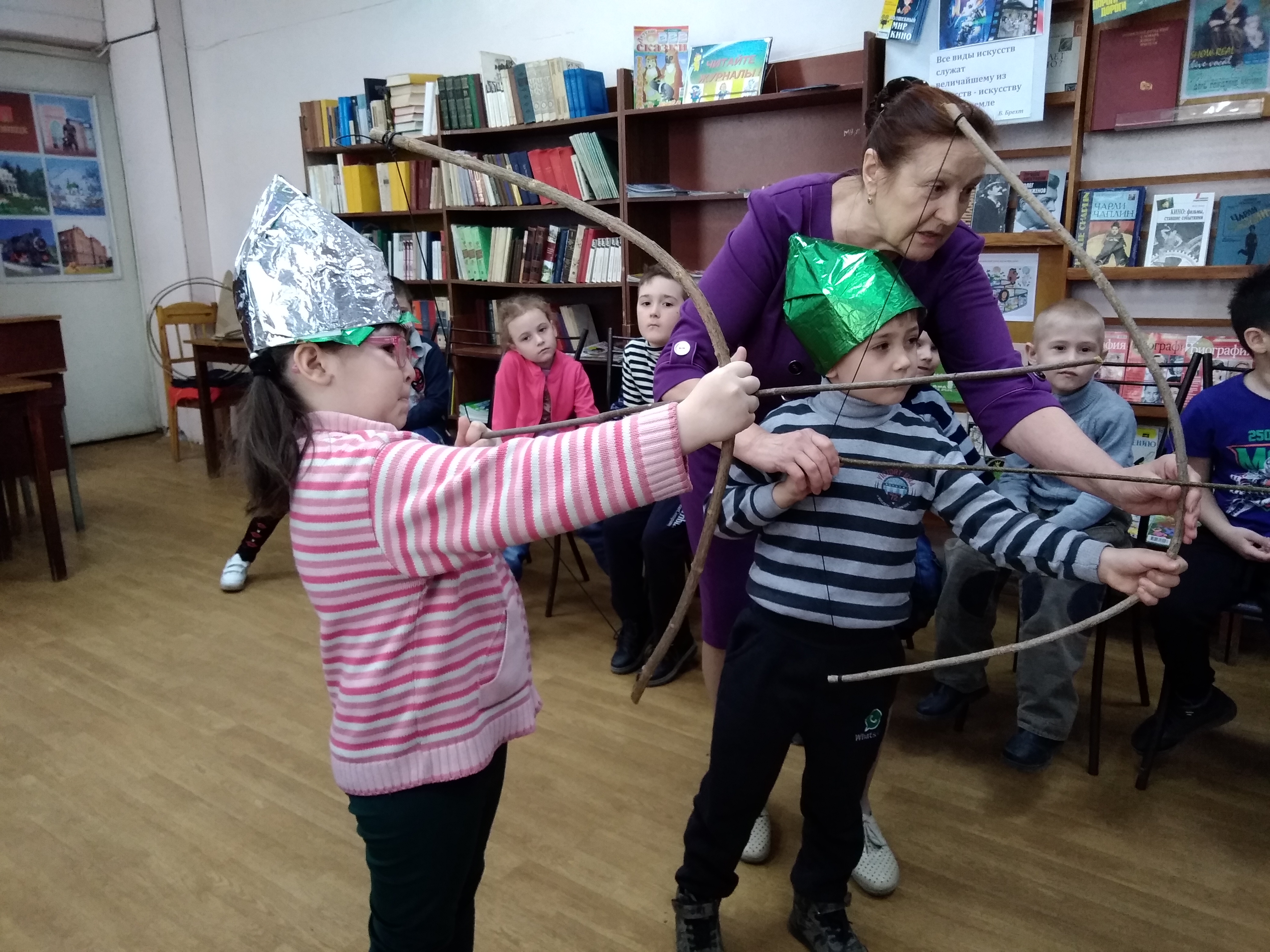 Библиотекарь познакомила ребят с одной из славных страниц отечественной истории – победой русских воинов над немецкими рыцарями на Чудском озере в 1242 году. Юные читатели узнали о том, как разворачивались события Ледового побоища, как русские под предводительством князя Александра Невского смогли одержать победу в этой непростой битве. Кроме этого, дети состязались в стрельбе из лука, метании кеглей, проявляли чудеса смелости и ловкости, выходя в дозор.