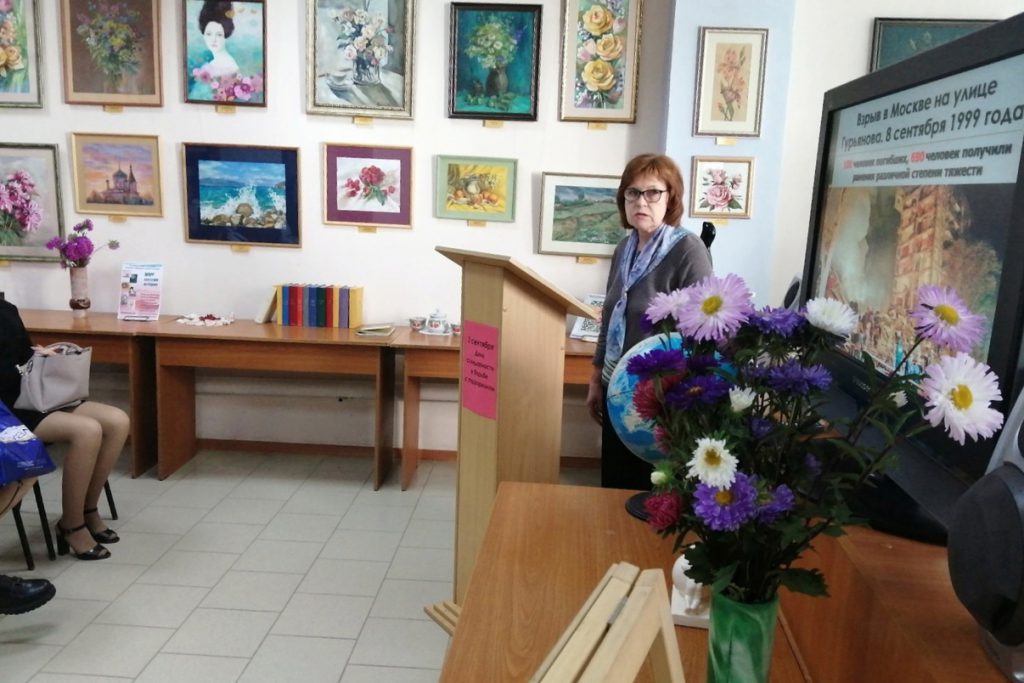 Сотрудники юношеской библиотеки для студентов многопрофильного и электронного колледжей провели урок-реквием, посвящённый Дню солидарности в борьбе с терроризмом.