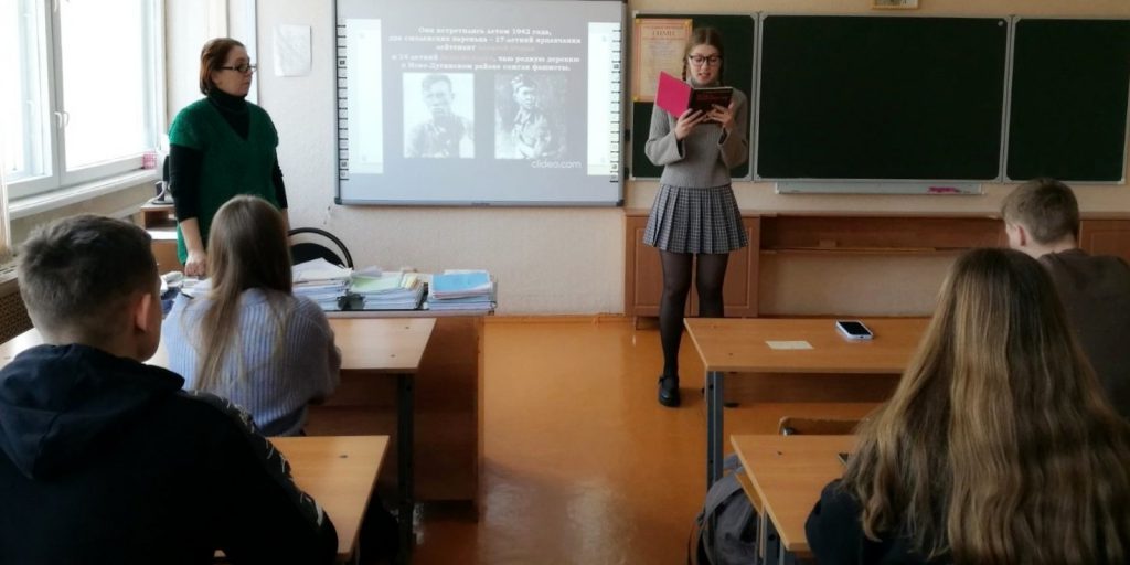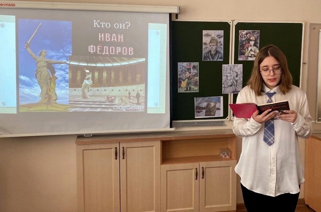 Школьники посмотрели кадры военной кинохроники, они были поражены историей юных бойцов Босоногого гарнизона из хутора Вербовка. Библиотекарь рассказала школьникам о трагической судьбе четырнадцатилетнего Ивана Фёдорова, а ребята прочли отрывки из книги А.Я. Очкина «Иван – я, Федоровы – мы».