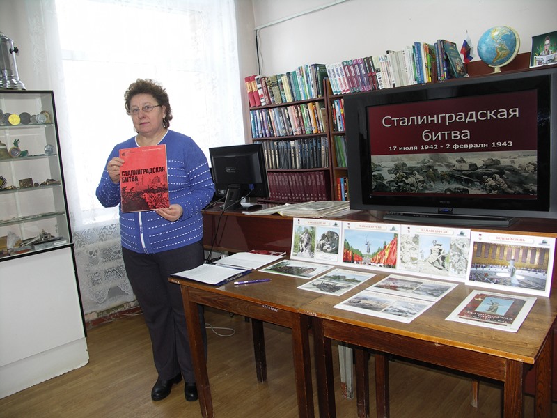 Ребятам были показаны кадры фотохроники тех страшных дней. Эти документы истории лучше всяких слов говорят о цене победы, свершившейся на Волге. Пятиклассники узнали новые факты героизма наших солдат и командиров, познакомились с историческими памятниками той великой битвы: Мамаевым курганом, домом Павлова, музеем-панорамой «Сталинградская битва». Ребятам объяснили, что разгром крупной немецко-фашистской группировки под Сталинградом не случайное событие, а тем более не результат лишь ошибок командования вермахта и самого Гитлера, победа на Волге стала возможной благодаря мужеству советских граждан.
