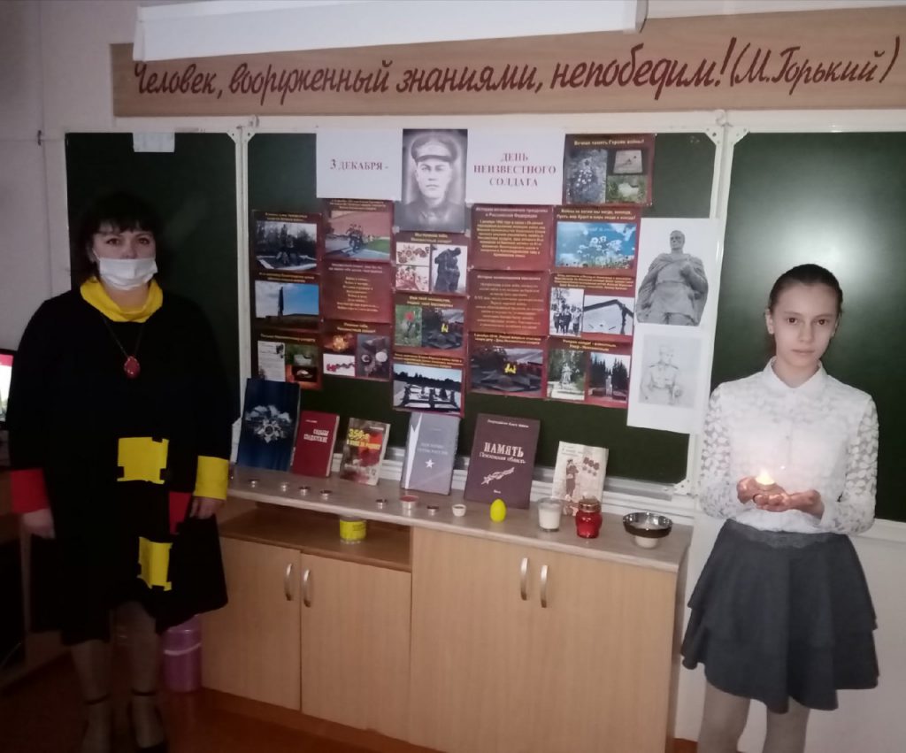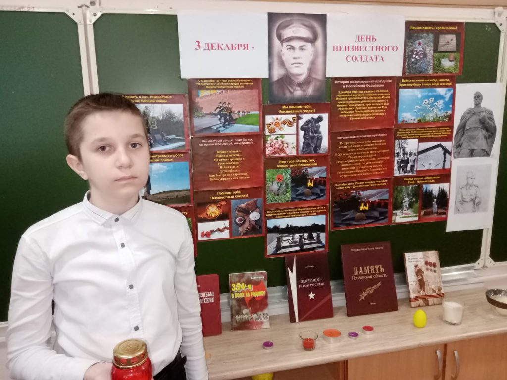 В ходе мероприятия библиотекарь рассказала о бессмертном подвиге советских людей и о тех, кто не вернулся с войны, ценой жизни защищая своё Отечество. Мальчишки и девчонки узнали о мемориале воинской славы «Могила Неизвестного Солдата», в котором, возможно, захоронен наш земляк.