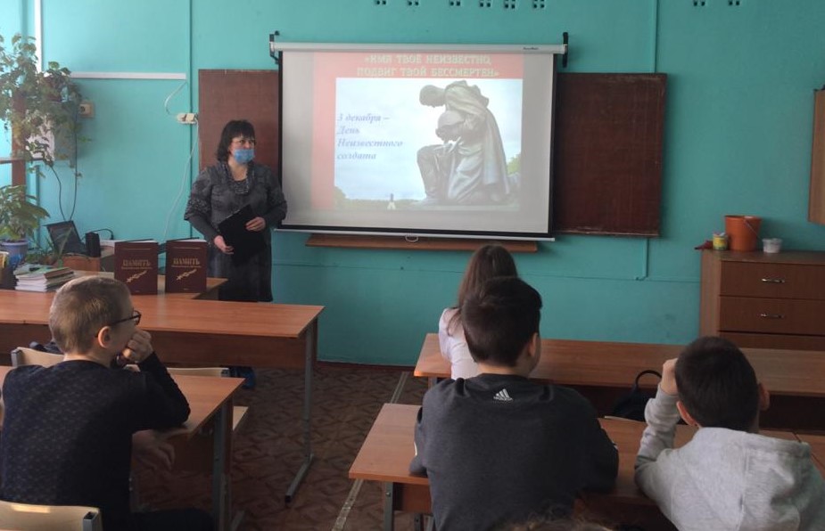 Сотрудники краеведческой библиотеки провели для школьников урок мужества «Неизвестный солдат, ты для каждого вечно живой».