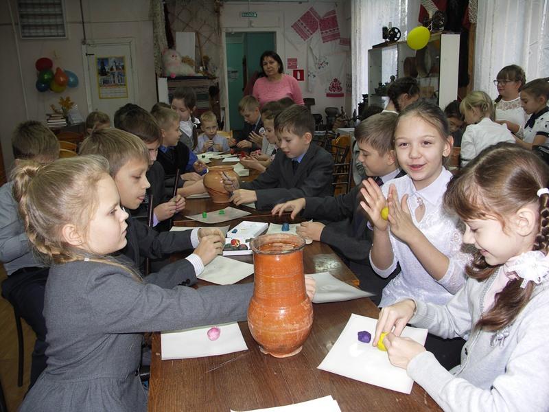 Школьники прикоснулись к древнему гончарному ремеслу, зародившемуся на заре цивилизации. Гончарное дело на Руси было одним из самых важных и почётных ремёсел. Детей познакомили с экспонатами мини-музея библиотеки из глины и керамики, которые помогли лучше понять быт наших предков. Небольшой фильм позволил школьникам увидеть процесс превращения куска обыкновенной глины в завораживающее взгляд гончарное изделие. Ребята вспомнили пословицы и поговорки, связанные с гончарным делом.