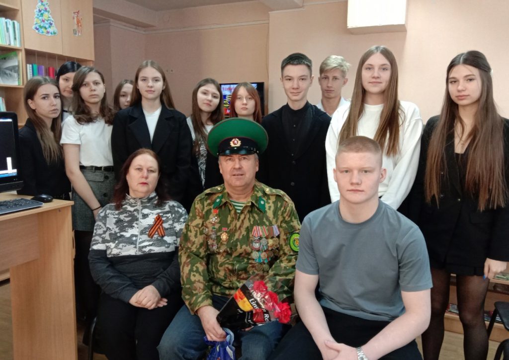 Накануне Дня Героев Отечества в библиотеке-экоцентре состоялась встреча девятиклассников школы № 5 с ветераном пограничной службы О.В. Герасимовым.