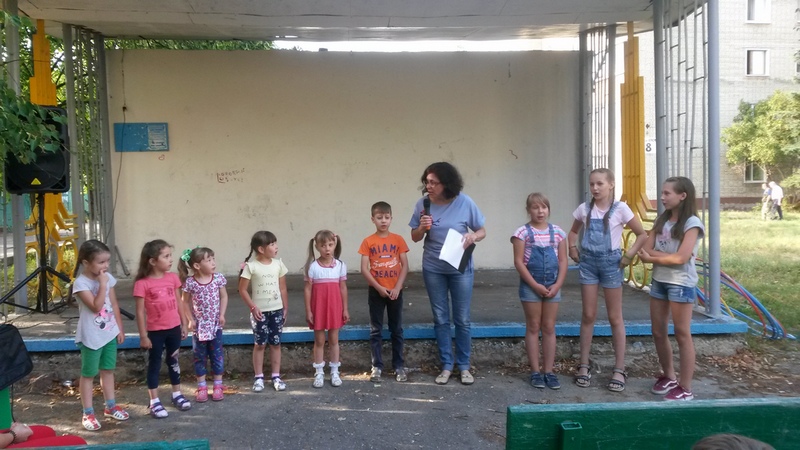 Очень важно иметь хорошее настроение летом. А жителям микрорайона его подарила игра-путешествие «Июль-макушка лета».  Взрослые и дети побывали на шести станциях. Путь им указывала ромашка, на лепестках которой были написаны их названия. Так как июль знаменит цветением липы – царицы медоносов, первая станция была связана именно с ней.  Участникам игры предложили ответить на вопросы о липе и липовом мёде. На следующих станциях им предстояло  отгадать «травяные» загадки, вспомнить июльские пословицы и поговорки, ответить на вопросы о бабочках и грибах и даже потанцевать,             получив заряд бодрости.