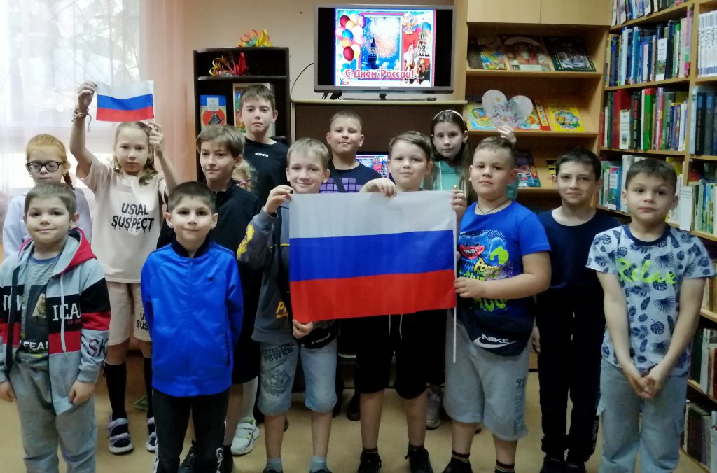 9 июня для ребят из пришкольных летних лагерей сотрудники детской библиотеки провели патриотические часы «Какое красивое слово – Россия!», посвящённые Дню России.