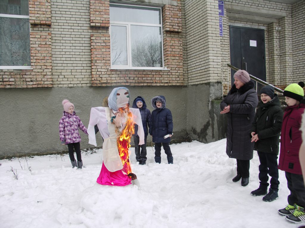 Ребята с большим воодушевлением участвовали в различных конкурсах масленичной недели. Так, из конкурса «Загадки на Масленицу» ребята узнали, из чего пекут блины. А с каким весельем и задором дети перетягивали канат. Все участники показали себя ловкими и умелыми в эстафете «Бег в мешках». С радостью и удовольствием мальчишки и девчонки состязались в петушиных боях. Кульминацией праздника стало традиционное масленичное угощение – ароматный чай и вкусные блины. Блины были просто объеденье! Спасибо огромное мастерицам-мамам! Затем родители с детьми вышли на улицу. Здесь главным символом праздника стало соломенное чучело зимы, наряженное в женскую одежду, которое сожгли под дружное скандирование: «Гори, гори ясно, чтобы не погасло!», тем самым прощаясь с холодами и зимой.