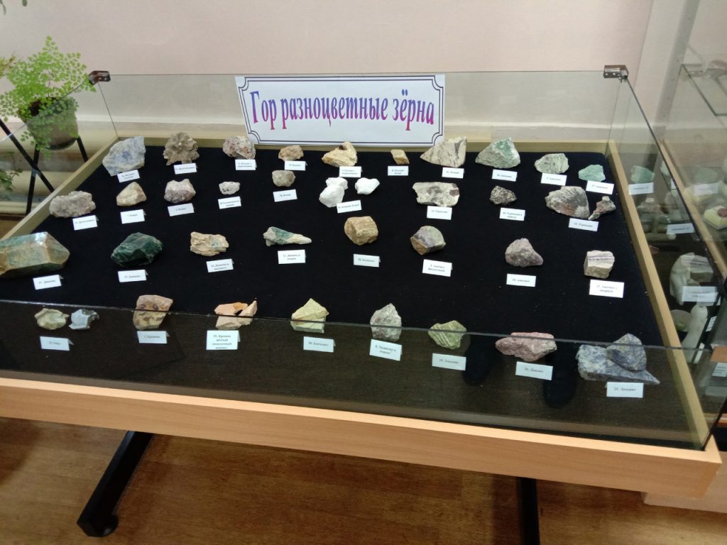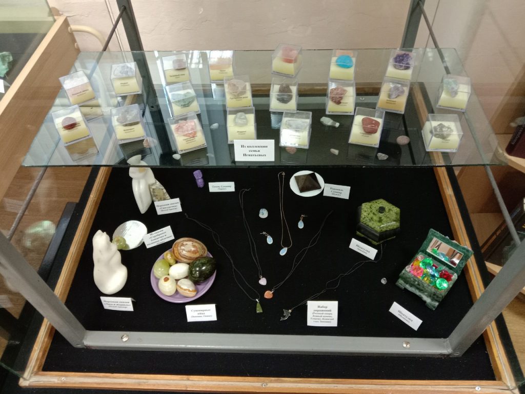 На экспозиции представлены горные минералы Кольского полуострова, Забайкалья, Алтая и Урала. Пять лет назад их подарила библиотеке семья читателей-геологов Буньковых перед отъездом из Кузнецка. Узнав о готовящейся выставке, откликнулась семья кузнечан Игнатьевых, предоставившая свою коллекцию камней, сувенирами и украшениями из поделочного камня поделились сотрудники городских библиотек.