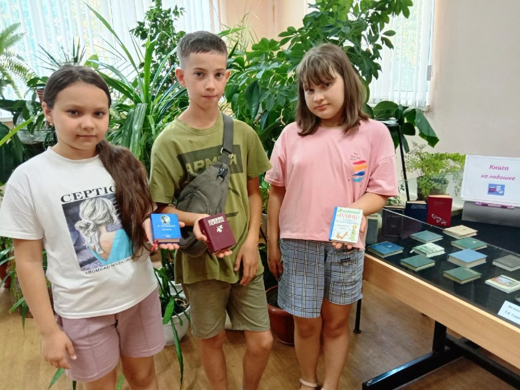 Библиотекари приглашают пользователей познакомиться с необычными изданиями выставки-инсталляции «Книга на ладошке» до конца августа.
