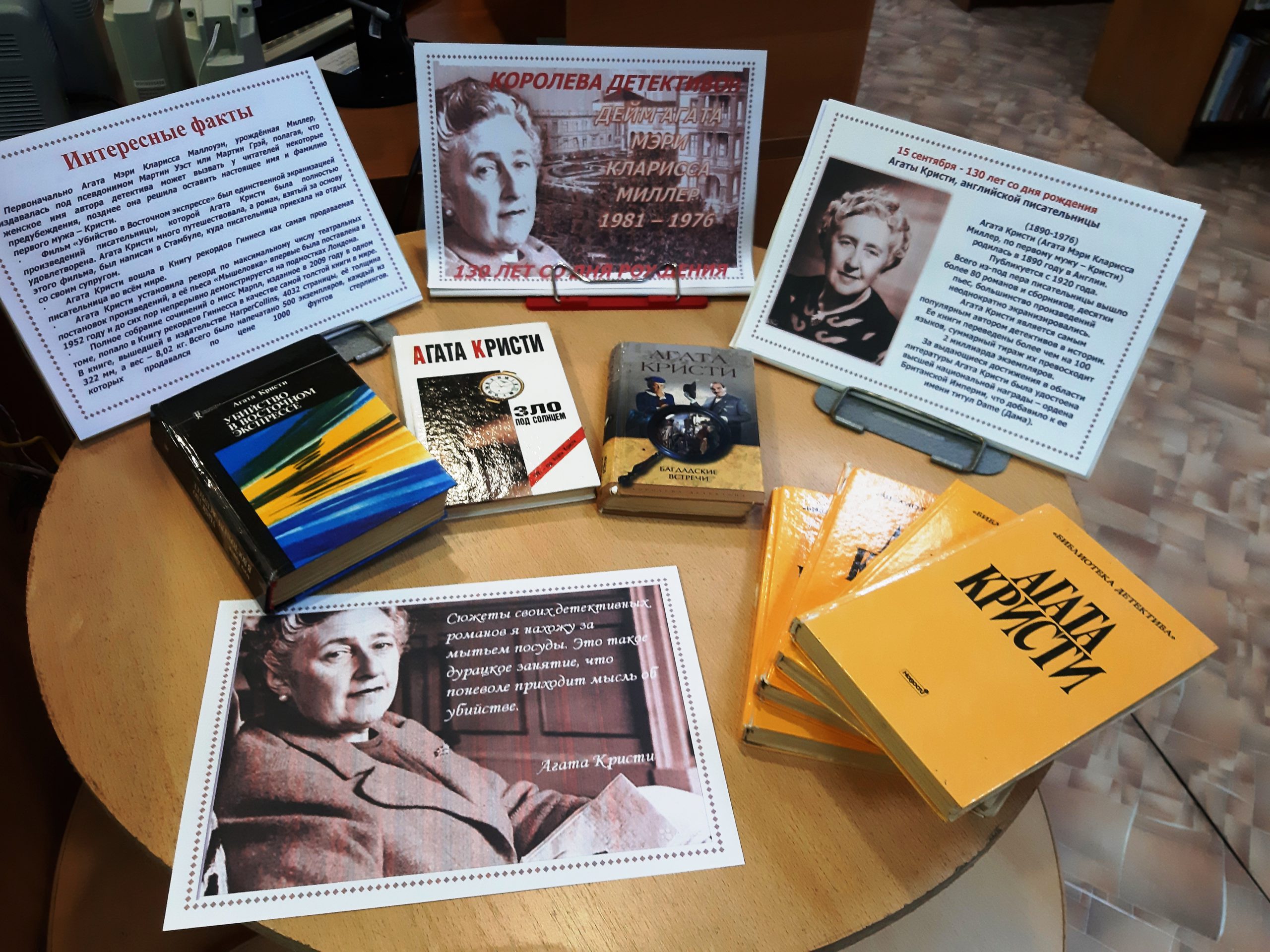 К 130-летию со дня рождения английской писательницы Агаты Кристи в зале делового и досугового чтения Кузнецкой центральной городской библиотеки им. А.Н. Радищева оформлена мини-выставка «Королева детектива».