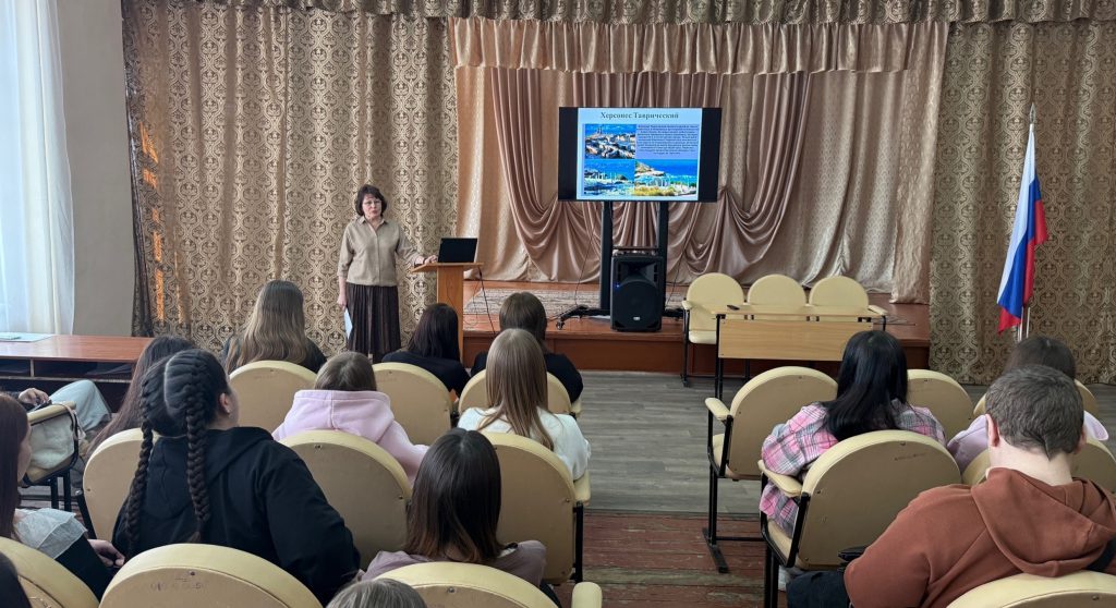 18 марта, в День воссоединения Крыма с Россией, сотрудники  Кузнецкой центральной городской библиотеки им. А.Н. Радищева провели для студентов многопрофильного колледжа патриотический час «Ожившие страницы Крыма», посвященный восстановлению исторической справедливости.