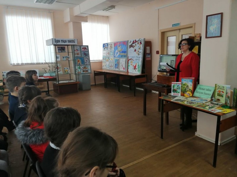 К 125-летию известного писателя-натуралиста Виталия Валентиновича Бианки сотрудники библиотеки-экоцентра для учеников школы № 5 провели час природы «Мир по имени БИАНКИ».