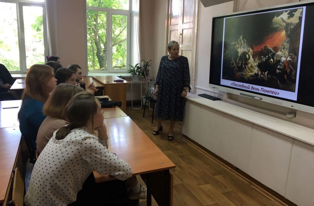 На этот раз учащиеся познакомились с работами мастеров исторического жанра. Картины В. Сурикова, И. Репина, К. Брюллова, К. Маковского дали возможность не только насладиться великолепными работами русских живописцев, но и вспомнить о знаменательных событиях и великих людях, творивших историю страны. Полотна «Боярыня Морозова», «Запорожцы пишут письмо турецкому султану»», «Переход Суворова через Альпы», «Воззвание Минина к нижегородцам» и другие дали возможность окунуться в давно минувшие события.