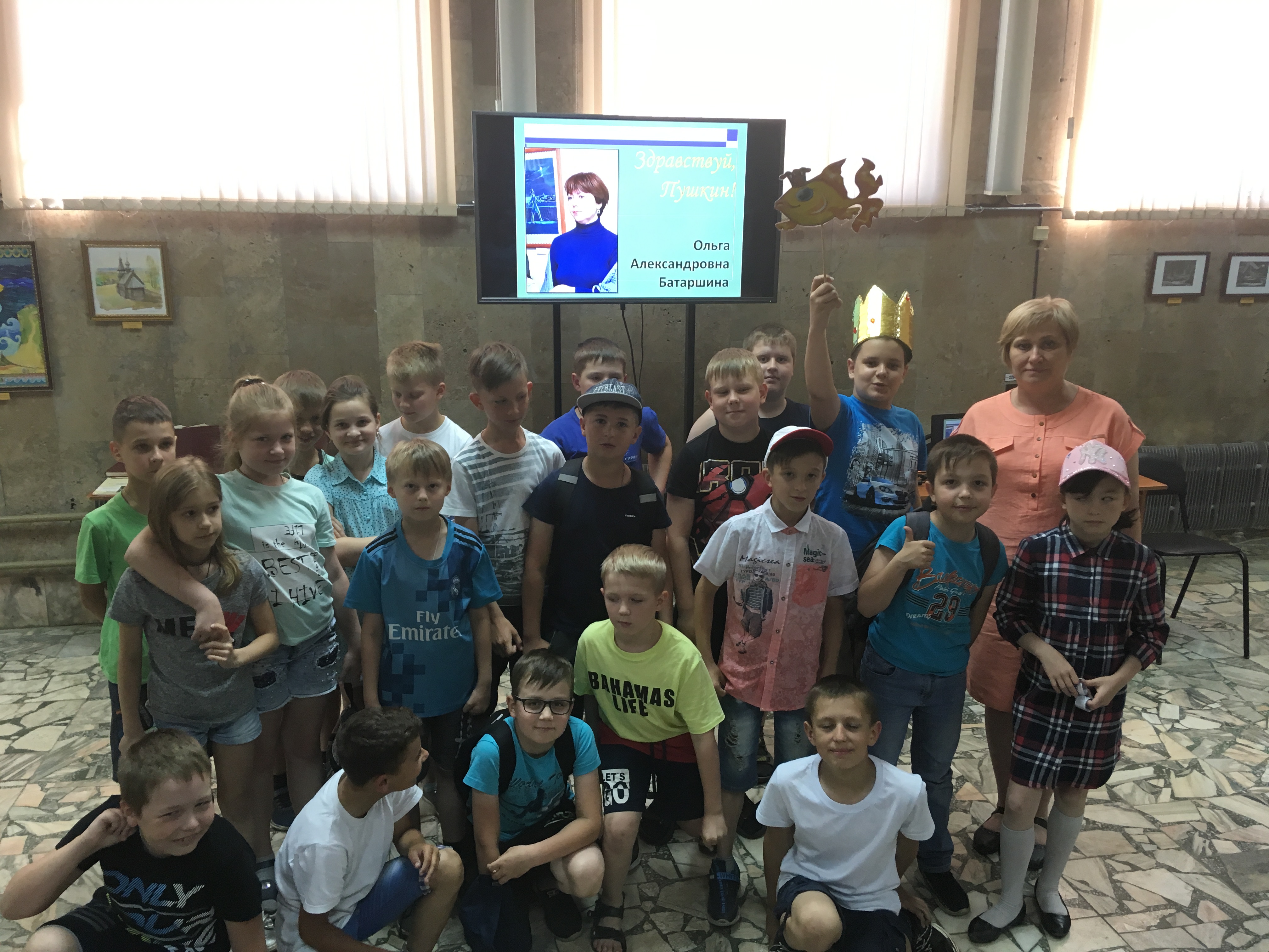 В этот день для детей из летних лагерей школ № 3 и № 16 сотрудники Кузнецкой центральной городской библиотеки им А.Н. Радищева провели мероприятия, посвященные 220-летию Александра Сергеевича Пушкина. Библиотекарь во вступительной беседе напомнила собравшимся о жизненном пути поэта: о его предках, о годах, проведённых в Царскосельском лицее, о семье, о его страшной гибели на дуэли. Проиллюстрировать всё это помогли картины Ольги Александровны Батаршиной, персональная выставка которой проходит в библиотеке.