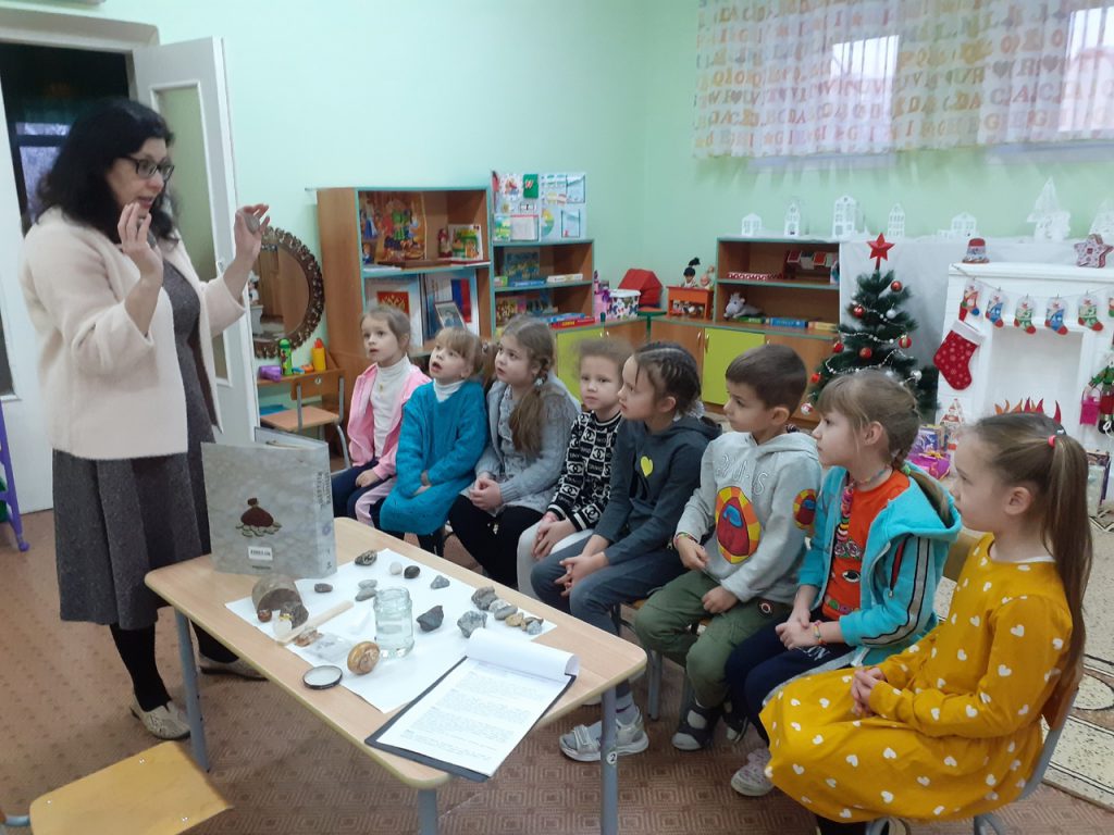 Сотрудники библиотеки-экоцентра в рамках цикла «От А до Я о природе» провели игру-практикум «Простые и ценные камни в природе» для воспитанников детского сада № 2.