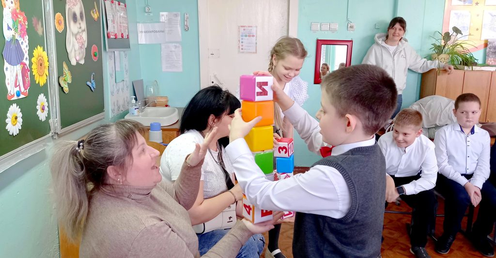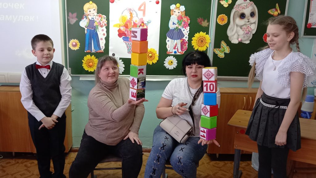 В конкурсе «Комплимент» девчонки и мальчишки от всего сердца подбирали мамам красивые слова. А в соревновании, где мамы называли своих любимых дочек и сыночков  ласковыми именами, победила дружба. Взрослые легко угадали на ощупь сыпучие продукты, вспомнили школьные годы и быстро узнали перевёрнутые сюжеты игры «Сказки наоборот». Конкурс с кубиками «Построй башню» стал настоящим испытанием на выдержку, аккуратность и чувство юмора.