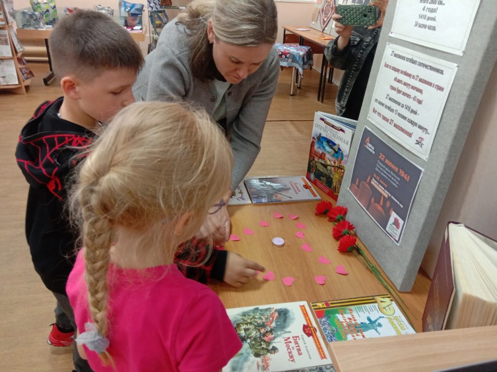 Ребятам напомнили, как 22 июня 1941 года начиналась Великая Отечественная война. С экрана звучал голос Левитана и песня «Священная война», мелькали кадры фронтовой кинохроники, плакаты военных лет, фотографии разрушенных городов, сёл, воздушных боёв, мемориалов и памятников, воздвигнутых после войны. Одним из таких памятных мест является Холм Славы в Кузнецке, где ежегодно накануне Дня памяти и скорби в сумерках зажигаются сотни свечей в память о погибших на фронтах Великой Отечественной войны, пропавших без вести, замученных в концлагерях, умерших от ран в мирное время ветеранах. О Холме Славы в Кузнецке написаны книги, сложены песни, стихотворения, звучали они и в этот день. Участникам урока мужества показали Книгу памяти Пензенской области, рассказали о Книге памяти города Кузнецка, которая в скором времени появится в библиотеке. Мальчики и девочки минутой молчания почтили память погибших в Великой Отечественной войне, а затем выложили маленькими алыми сердечками контур большого сердца памяти.