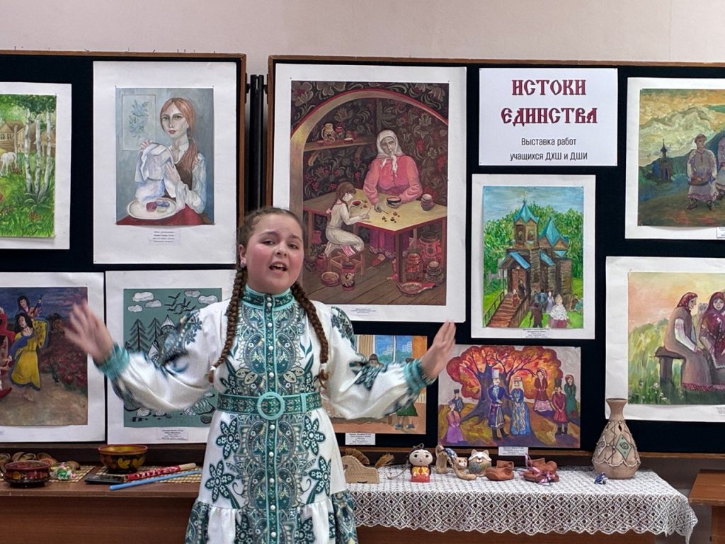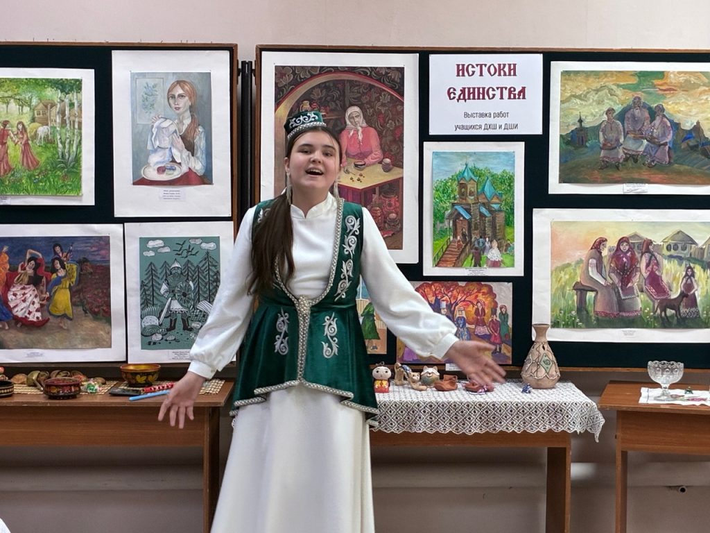 Музыкальная программа вечера была по-настоящему насыщенной и многоголосной. Звучали мелодии на русском, татарском и мордовском языках. Особое восхищение вызвало выступление студентки музыкального колледжа Натальи Болдыревой, исполнившей старинные песни из разных уголков России: «Счастье, мое счастье» (Калужская область), «Луганясо келунесь» (Мордовия) и «Гёллар уса» (песня волжских татар).