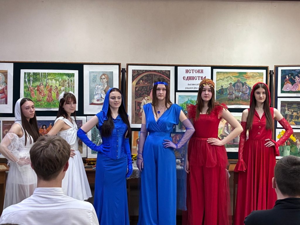 Театр мод «Модная улица» из многопрофильного колледжа под руководством Альфии Сафаровой представил дефиле «Триколор», подчеркнув, что эти цвета, как и могучий русский язык, объединяют всех россиян.