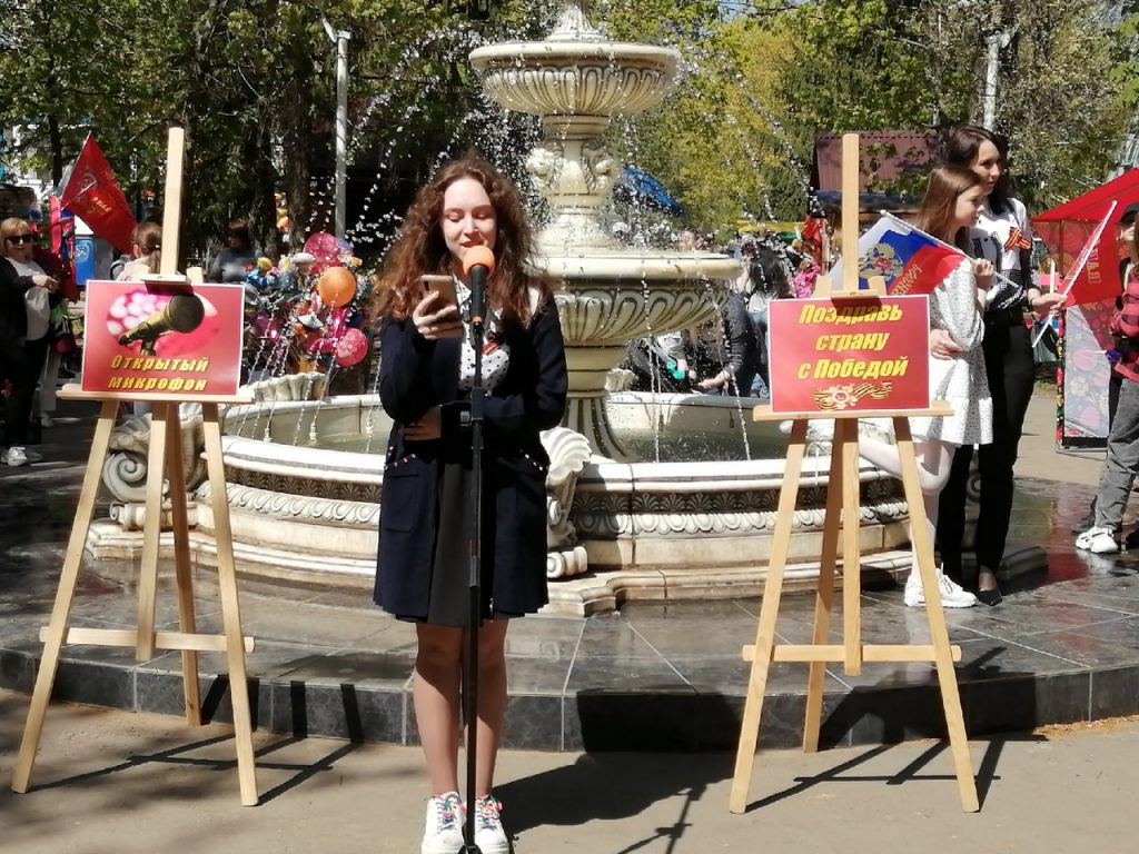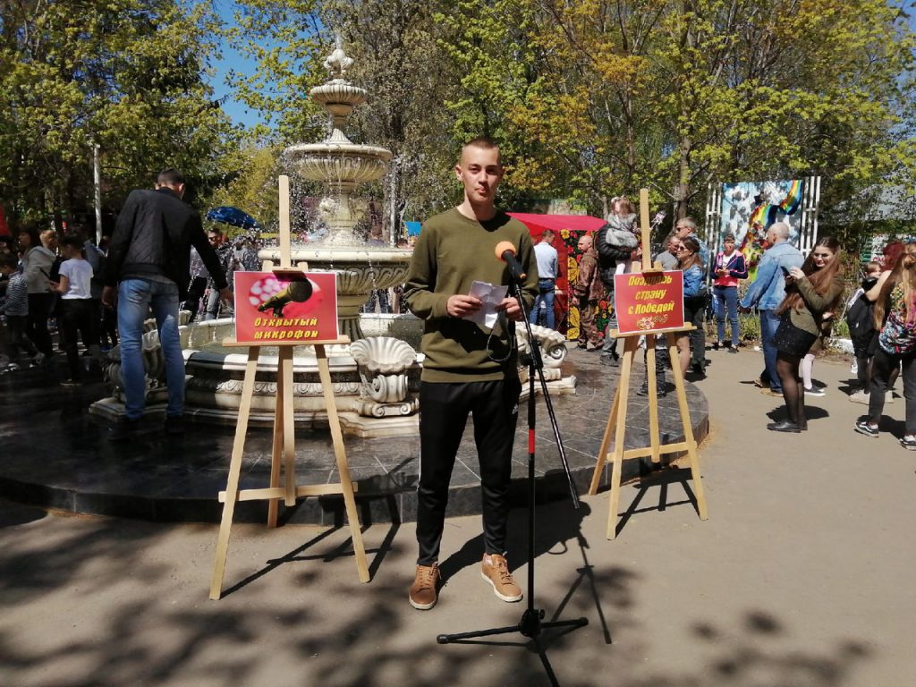 9 мая в «Нескучном саду» сотрудники юношеской библиотеки провели открытый поэтический микрофон памяти «Поздравь страну с Победой».