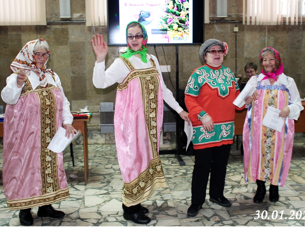 Январь – месяц богатый на новогодние праздники. Ведь 1 января мы встречаем Новый год вместе со всеми жителями планеты. 14 января в России отмечают старый Новый год. А 25 января по восточному календарю встречают Год Металлической Крысы. Вот и решили члены клуба «Гармония» вновь окунуться в новогоднее веселье. Творческая группа приготовила костюмированный новогодний музыкальный мини-спектакль «В гостях у Белоснежки и семи гномов». Прекрасные костюмы, сшитые руками мастериц клуба, танцы, новогодние стихи стали украшением первой части встречи. Затем прозвучали «крысиные» частушки и множество новогодних пожеланий.