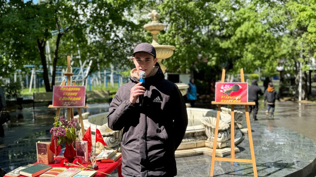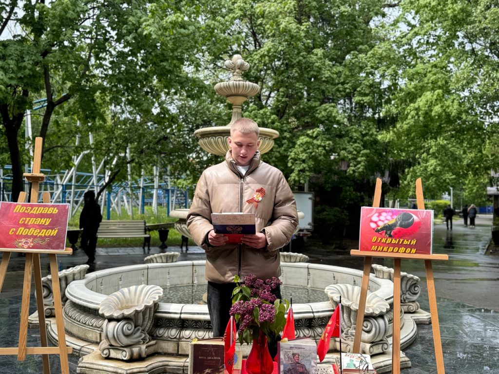 9 мая в «Нескучном саду» прошел открытый микрофон «Наследники Победы», организаторами которого выступили сотрудники юношеской библиотеки.