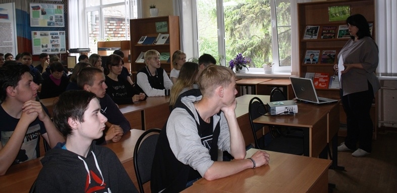 В Кузнецком колледже электронных технологий сотрудники библиотеки семейного чтения провели час мужества «Нас водила молодость».