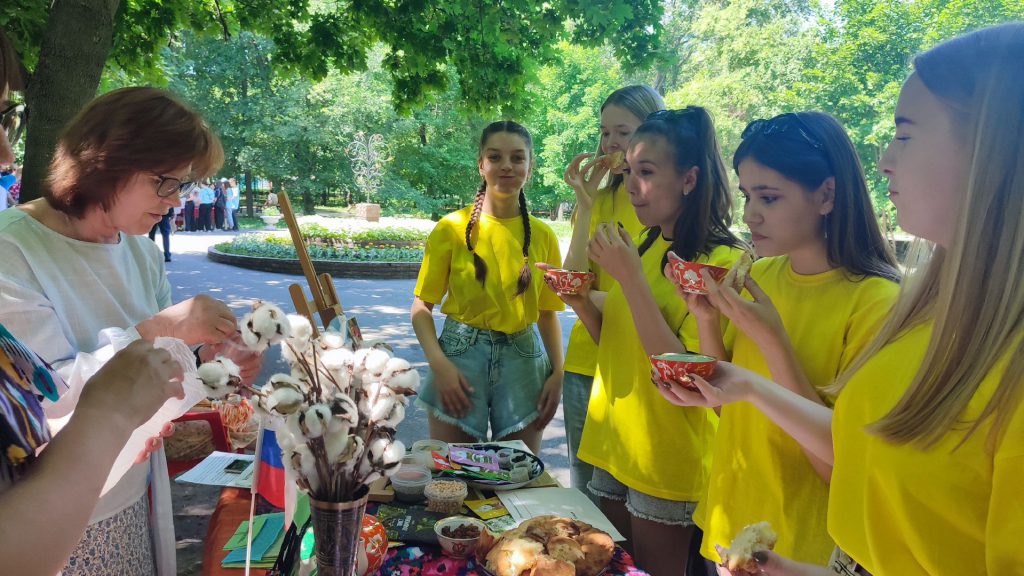 В День России, 12 июня, в Кузнецком культурно-досуговом комплексе «Нескучный сад» сотрудники городских библиотек провели для молодёжи этнопутешествие «Национальная горница».