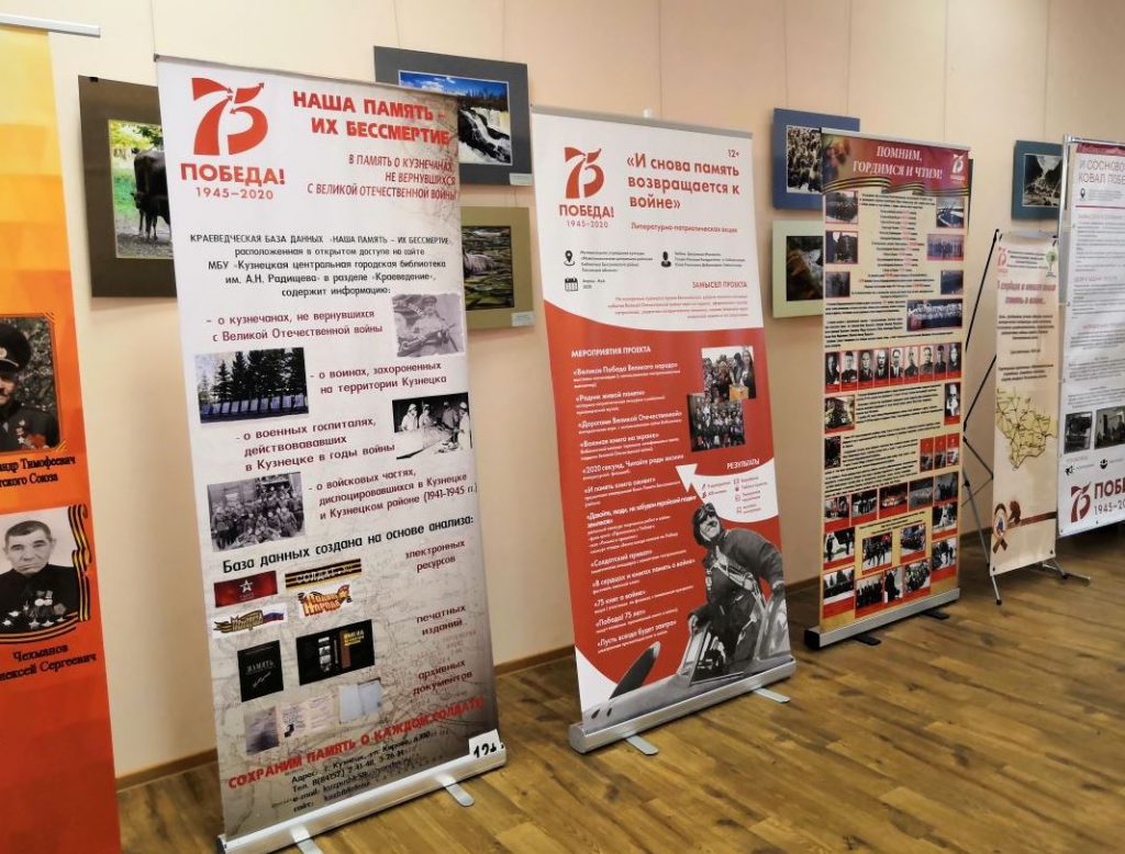 В рамках фестиваля состоялись стендовые презентации проектов (программ) центральных муниципальных библиотек Пензенской области, посвящённых 75-летию Победы в Великой Отечественной войне 1941-1945 гг. и Году памяти и славы. Кузнецкая центральная городская библиотека им. А.Н. Радищева представила проект по созданию краеведческой базы данных «Наша память – их бессмертие». В рамках проекта на сайте библиотеки будет создана электронная база данных, в которой можно будет найти информацию о кузнечанах, не вернувшихся с Великой Отечественной войны, данные о воинах, захороненных на территории Кузнецка, о войсковых частях, дислоцировавшихся в Кузнецке и Кузнецком районе, о военных госпиталях, действовавших в нашем городе в годы войны.