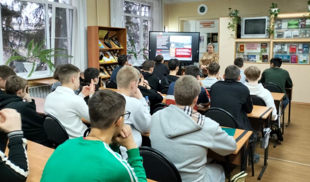 В начале декабря  для студентов колледжа электронных технологий и многопрофильного колледжа сотрудники Кузнецкой центральной городской библиотеки им. А.Н.Радищева провели час памяти «На огненных московских рубежах».