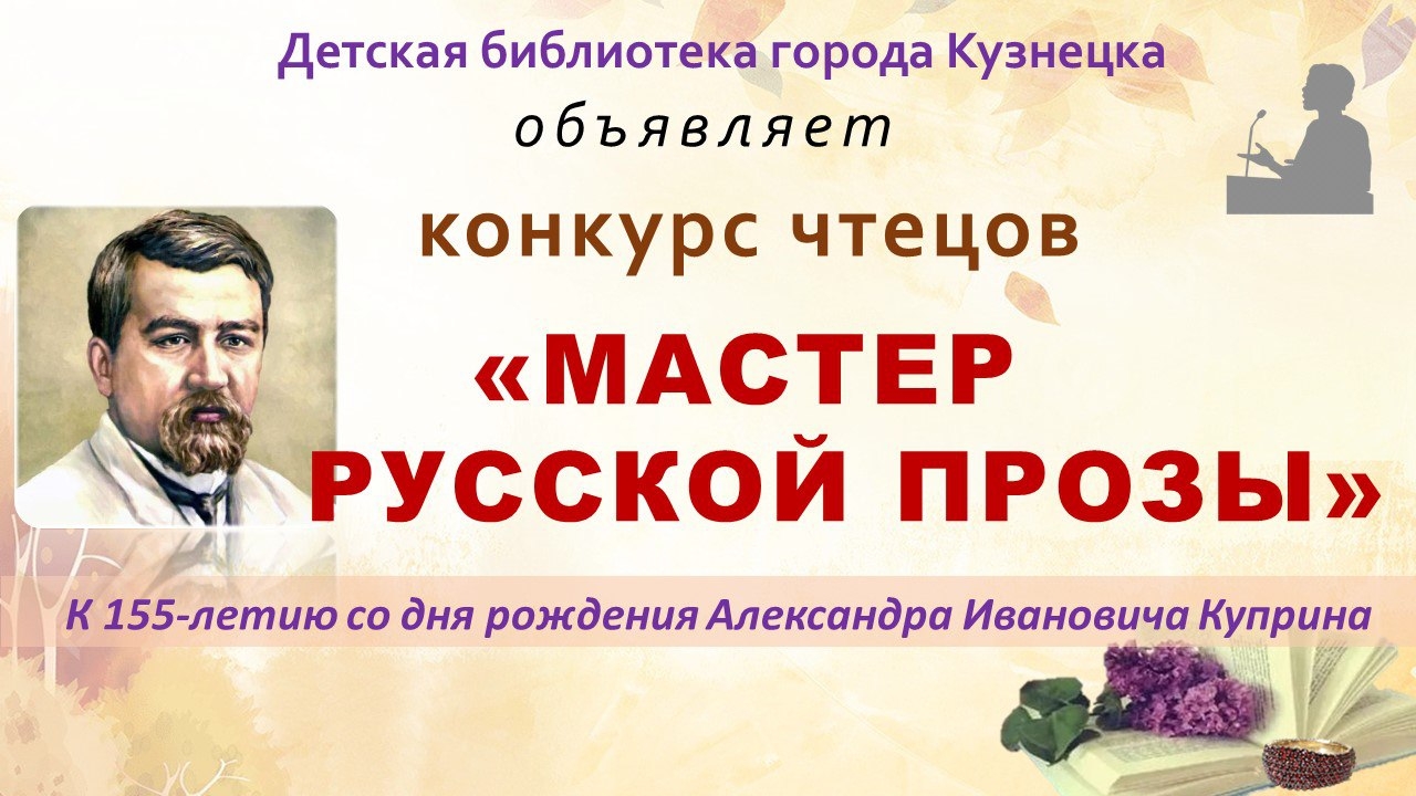 Детская библиотека города Кузнецка приглашает школьников и студентов принять участие в конкурсе чтецов «Мастер русской прозы», посвящённом 155-летию со дня рождения классика отечественной литературы Александра Ивановича Куприна.