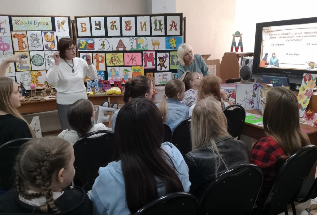 Весь зал с азартом участвовал в викторине-лотерее посвященной славянской письменности, собирал пазлы из букв старославянской азбуки.Тёплая атмосфера майской встречи стала ярким событием для всех!