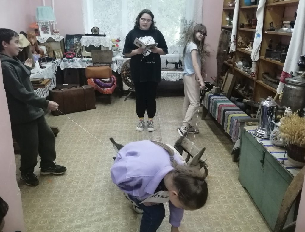 В этот день в библиотеке прошла интеллектуальная весёлая игра между бабушками и внуками. Они участвовали в различных сценках, играх и конкурсах: «Заморочки из старинной бочки», «Найди предмет из сказки», «Ожившие герои книг», «Предметы старины далёкой», «Из прошлого в настоящее». А экспонаты мини-музея были подсказкой в выполнении заданий. Шутки, смех и хорошее настроение царили в библиотеке!