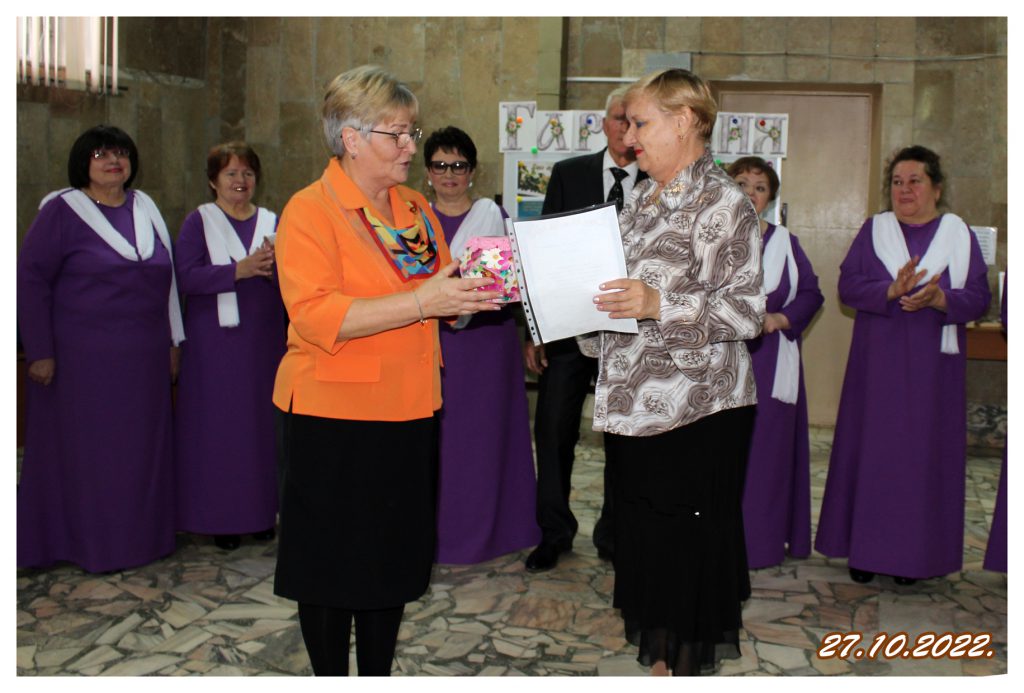 Прекрасным подарком собравшимся стала встреча с музыкальным ансамблем «Под сенью муз». Этот коллектив давно и плодотворно сотрудничает с клубом «Гармония». Музыкальная классика, песни советских композиторов и народные мелодии в исполнении ансамбля доставили подлинное наслаждение клубистам. По завершению выступления руководитель ансамбля Галина Андреевна Сидорова выразила надежду, что встречи двух коллективов будут продолжаться.