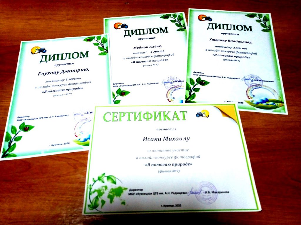 Победители и призёры конкурса определялись интернет-голосованием. Наибольшее количество лайков набрала фоторабота Дмитрия Глухова «Последствия урагана в Западном», на втором месте – фото Алёны Медной «После уборки Салминского родника», третье место завоевал Владислав Ушенин с фотографией «Расти, дубочек!». Победителям вручены дипломы и сладкие презенты от главы города Кузнецка С.И. Лаптева. Остальным участникам онлайн-конкурса фотографий разосланы электронные сертификаты. Познакомиться с фотоработами  и итогами онлайн-конкурса можно в группах библиотеки: