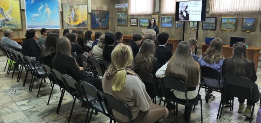 В вводной беседе перед занятием библиотекарь подчеркнула, что осенняя листва — это настоящая палитра красок, которая часто используется при составлении разных композиций и картин. Она предложила участникам студии посмотреть ролик «Красота осенних листьев», затем предложила поработать над составлением аппликации «Осенняя ваза», рассказала о материалах, подготовленных к занятию.