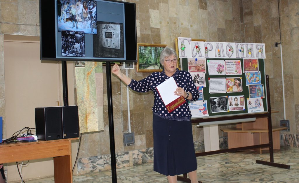 В этом году исполнилось бы 100 лет участнице антифашистского подполья, члену организации «Молодая гвардия» Любови Шевцовой. Руководитель клуба «Гармония» Ирина Анатольевна Расторгуева поведала о короткой, но яркой жизни этой советской героини, о делах молодогвардейцев в годы войны. Рассказала она и о том, как будучи школьницей, ездила на экскурсию в Краснодон на место гибели комсомольцев-молодогвардейцев. В память об этой поездке у неё остались фотографии, которые сегодня она пересматривает с особым чувством: «Поездку нашего класса организовал замечательный учитель истории, патриот, краевед, ветеран педагогического труда А.А. Степанов. Я очень благодарна ему за эту поездку». Собравшимся были показаны наиболее памятные фрагменты из художественного фильма «Молодая гвардия», снятого в 1948 году.