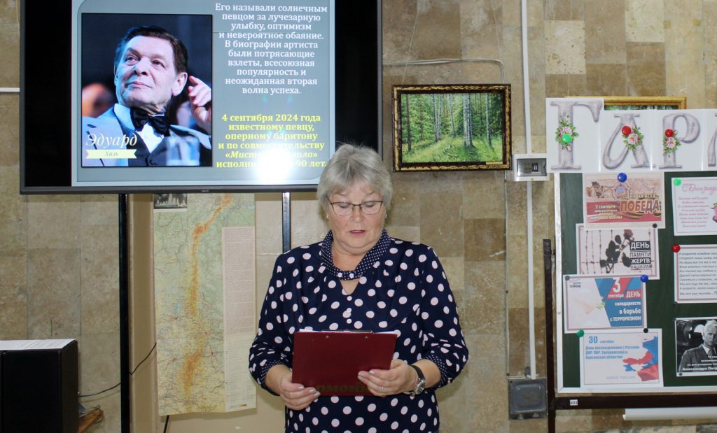 По традиции, сложившейся на прошлых встречах, разговор шел о памятных датах сентября. Вспомнили о Дне памяти жертв фашизма, который отмечается 2 сентября во всем мире с 1962 года . О трагедии Беслана, случившейся 20 лет назад (в 2004 году), рассказала библиотекарь Т.Ю. Военкова. Упомянули на встрече и о Дне воссоединения России с Донецкой и Луганской республиками, а также с Запорожской и Херсонской областями.