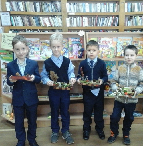 На очередном занятии творческой студии «Родничок» сотрудники библиотеки-экоцентр предложили ребятам заняться составлением мини-ландшафтов из природного материала.