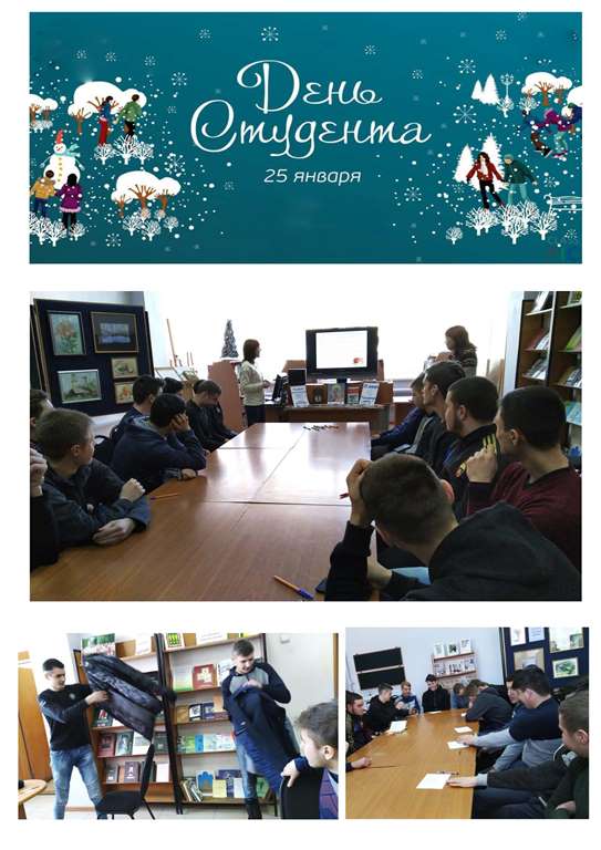 В честь этого праздника в юношеской библиотеке собрались студенты второго и пятого курсов колледжа. В ходе мероприятия учащиеся вспомнили историю праздника и его традиции, посоревновались в мастерстве написания шпаргалок с помощью сказки А.С. Пушкина «Руслан и Людмила». Также ребята узнали о самой известной студенческой традиции на Татьянин день – призыв Шары, они обменялись приметами «на удачу» в день сдачи экзамена. Студенты продемонстрировали юмор и артистичность, обращаясь к директору колледжа в форме письма Татьяны к Онегину из романа А.С. Пушкина.