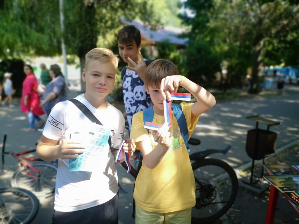 В День Государственного флага Российской Федерации в «Нескучном саду» сотрудники библиотек провели патриотическую акцию «Наш флаг державный».