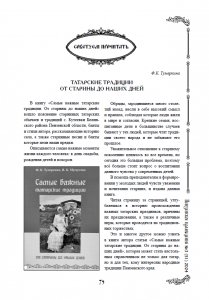 Тумеркина, Ф.К. Татарские традиции от старины до наших дней / Ф.К. Тумеркина // Пензенское краеведение. – 2024. – № 3 (51). – С. 75 : 1 фото. – Свободный доступ из сети Интернет. – URL : https://disk.yandex.ru/i/laO1rKhHHHsSfQ
