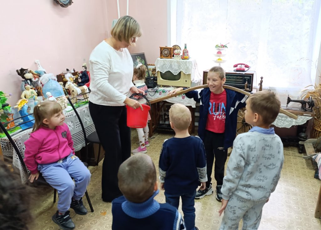 Детям из социально-реабилитационного центра библиотекари провели экскурсию по библиотеке, познакомили их с экспонатами мини-музея и выставкой кузнецкой умелицы Дугиной Людмилы Михайловны.