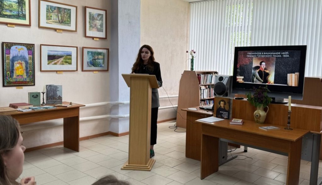 В юношеской библиотеке для студентов многопрофильного колледжа прошли экскурсии по выставке семьи художников Анвяря и Ольги Батаршиных «Два поэта – одна Россия», посвященной 225˗летию со дня рождения А.С. Пушкина и 210˗летию со дня рождения М.Ю. Лермонтова.