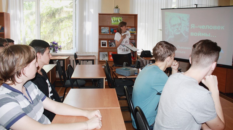 В преддверии 22 июня, Дня памяти и скорби в России, сотрудники библиотеки семейного чтения представили кузнецким студентам видеокомпозицию «Я — человек войны» о писателе – фронтовике Борисе Васильеве, который знал о войне не понаслышке, оставив в своих произведениях проникновенное изображение мужества советского народа.