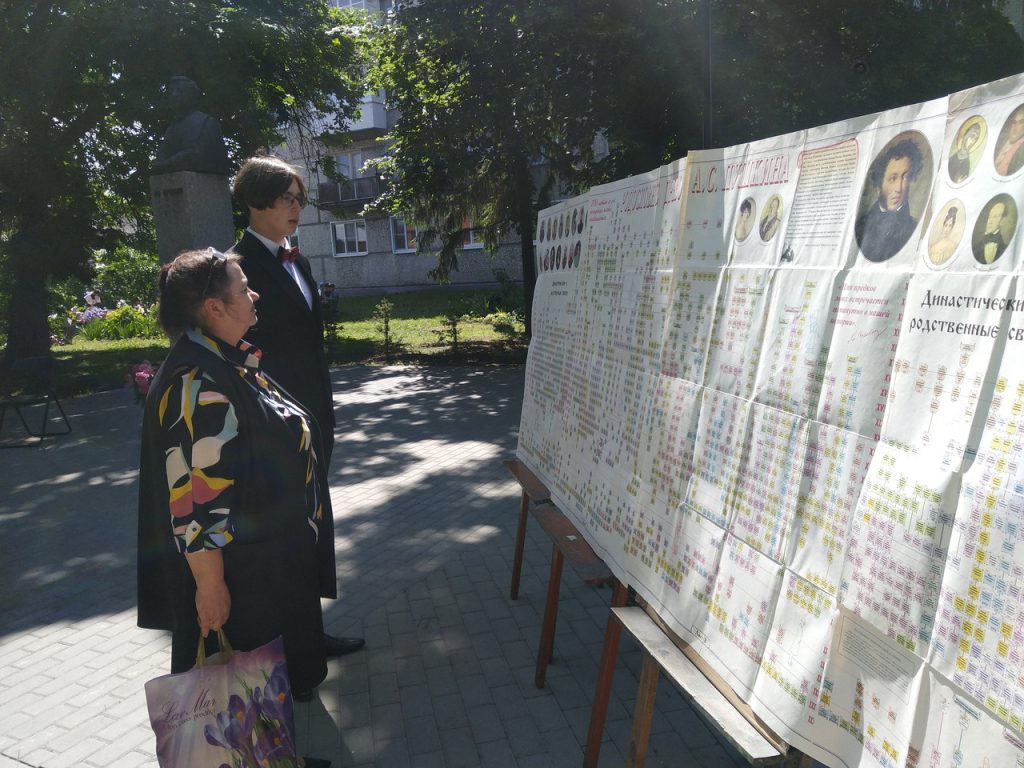Максим Качиев в роли Пушкина артистично исполнил стихотворение «Клеветникам России», написанное в 1831 году, но актуальное и сегодня. Работал «Открытый микрофон», к нему подходили постоянные читатели библиотек из разных микрорайонов города: дошкольники, школьники, студенты. Востребованной была выставка книг поэта и литературы о нем. Посетителей заинтересовали стенды с родословной А.С. Пушкина.