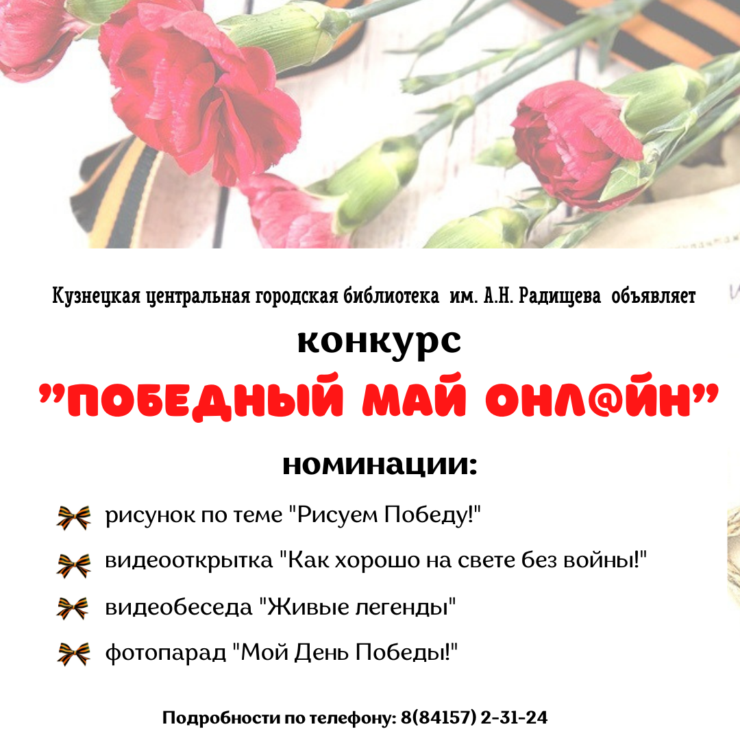 5 апреля в Кузнецкой центральной городской библиотеке им А.Н. Радищева стартует конкурс #ПобедныйМай_онл@йн.
