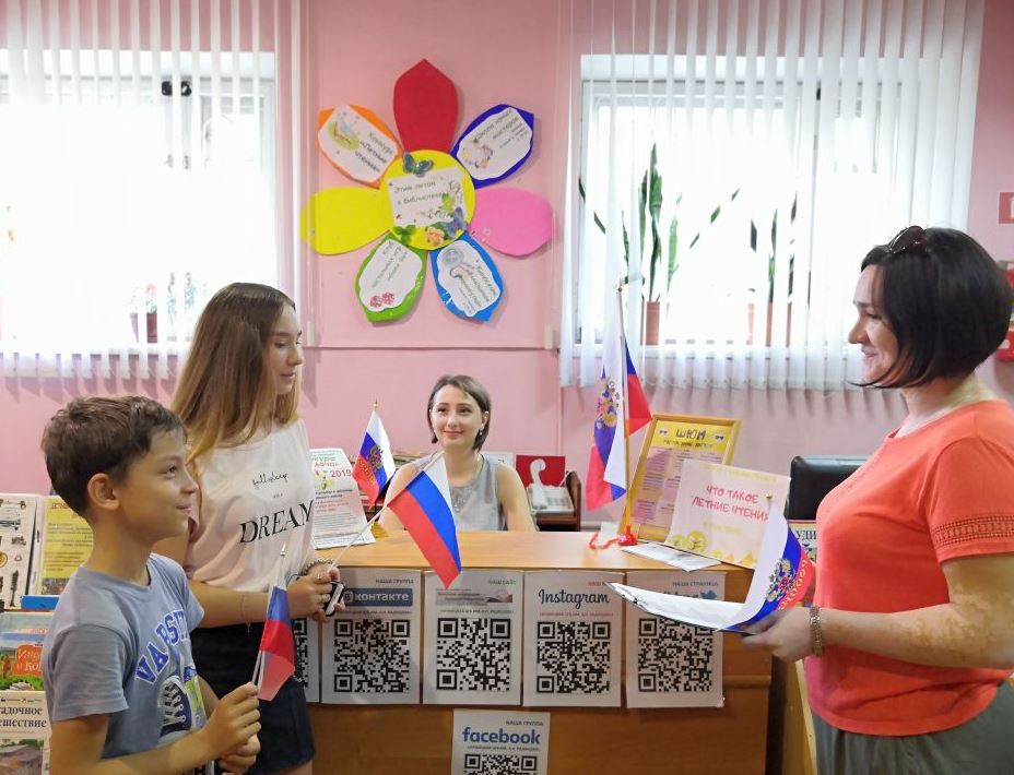 Читатели детского абонемента приняли участие в викторине и активно отвечали на вопросы, связанные с государственными символами нашей Родины. В библиотеке весь день работала студия аквагрима, в которой желающие могли украсить лицо изображением российского триколора.
