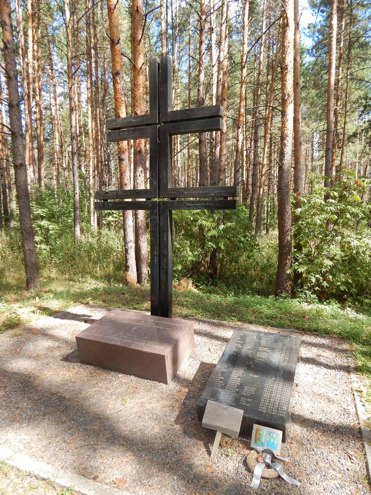 Здесь, под соснами, находится памятный знак с высеченными на камне словами: «Здесь покоятся 839 жертв Второй мировой войны». Случайно совпало, что совсем недавно, 23 июля 2013 года, состоялось его открытие. Прошло 5 лет, стёрлись холмики могил, но территория мемориала ухожена, благоустроена.